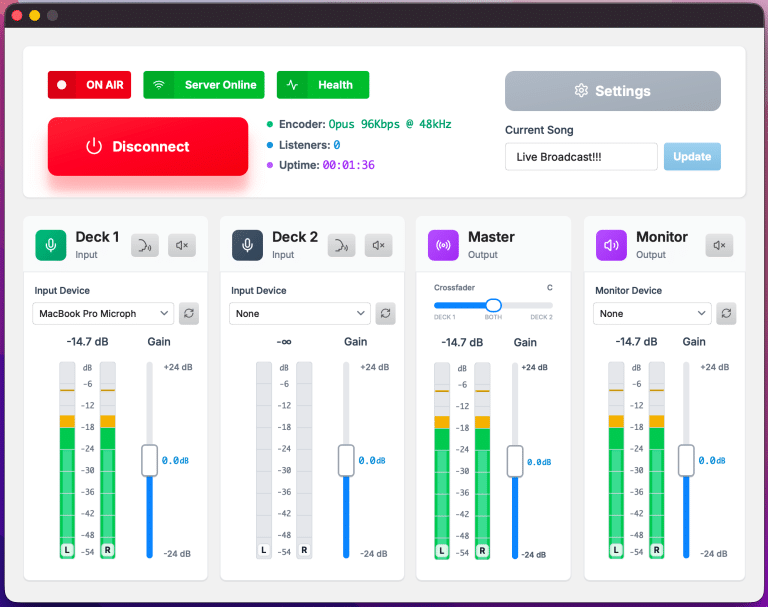 Professional broadcasting software fully integrated with your Caster.fm account.